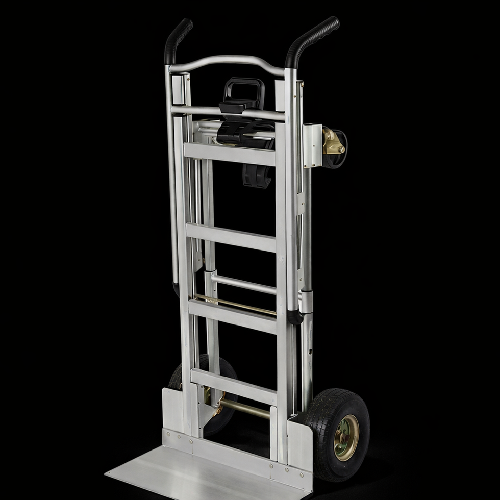 Le diable en aluminium 3-en-1 se transforme facilement, d’une seule main, en diable à 2 roues, en chariot à 4 roues ou en chariot assisté à 4 roues, s’adaptant à tous les types de charges et de configurations. Robuste et ergonomique, il supporte jusqu’à 453 kg de charge.