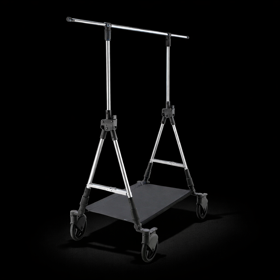 Porte-vêtements mobile fabriqué à partir de matériaux durables. Les roues fermes et robustes permettent de se promener facilement sur les trottoirs cahoteux, les pavés ou les seuils de porte. Il est extensible, portable et facile à plier et à déplier. Un sac de rangement est fournis pour un transport optimal.